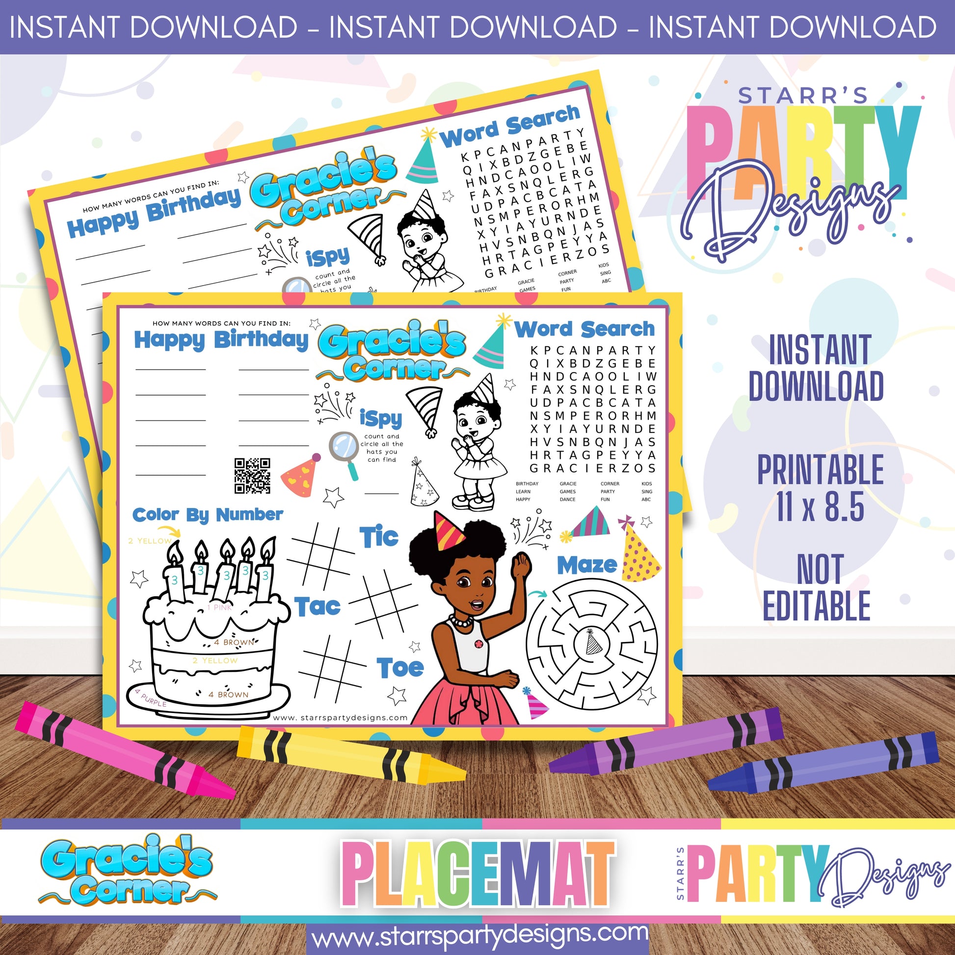 Diseño de mantel individual imprimible inspirado en GRACIE'S CORNER.