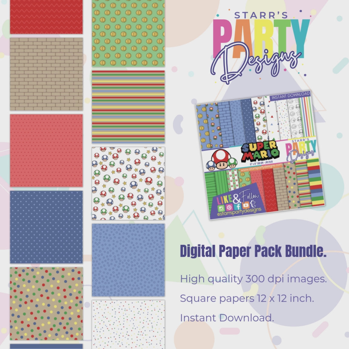 Este paquete de papel digital está inspirado en SUPER MARIO BROS.