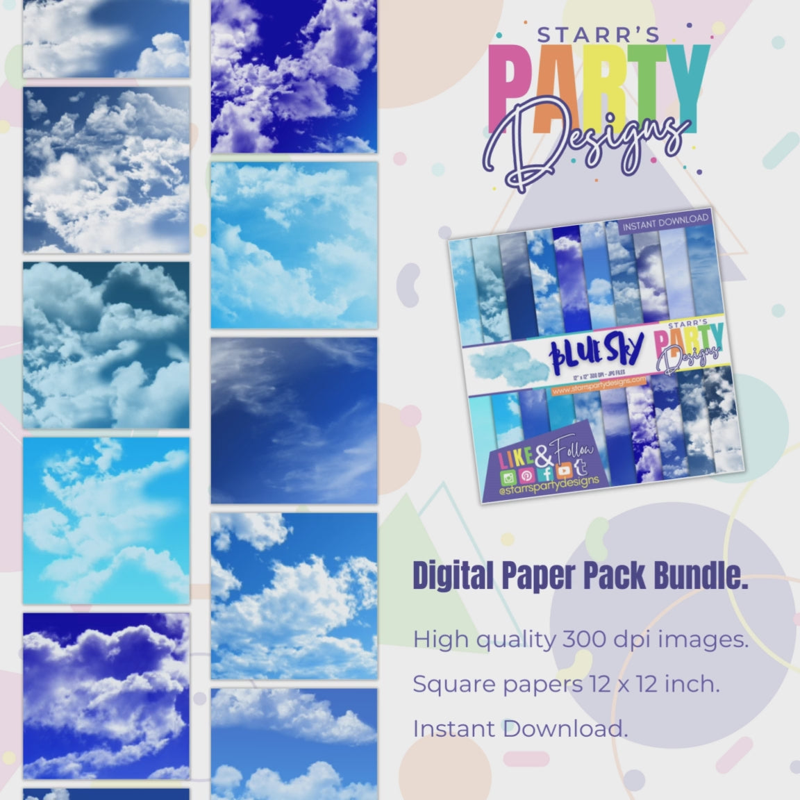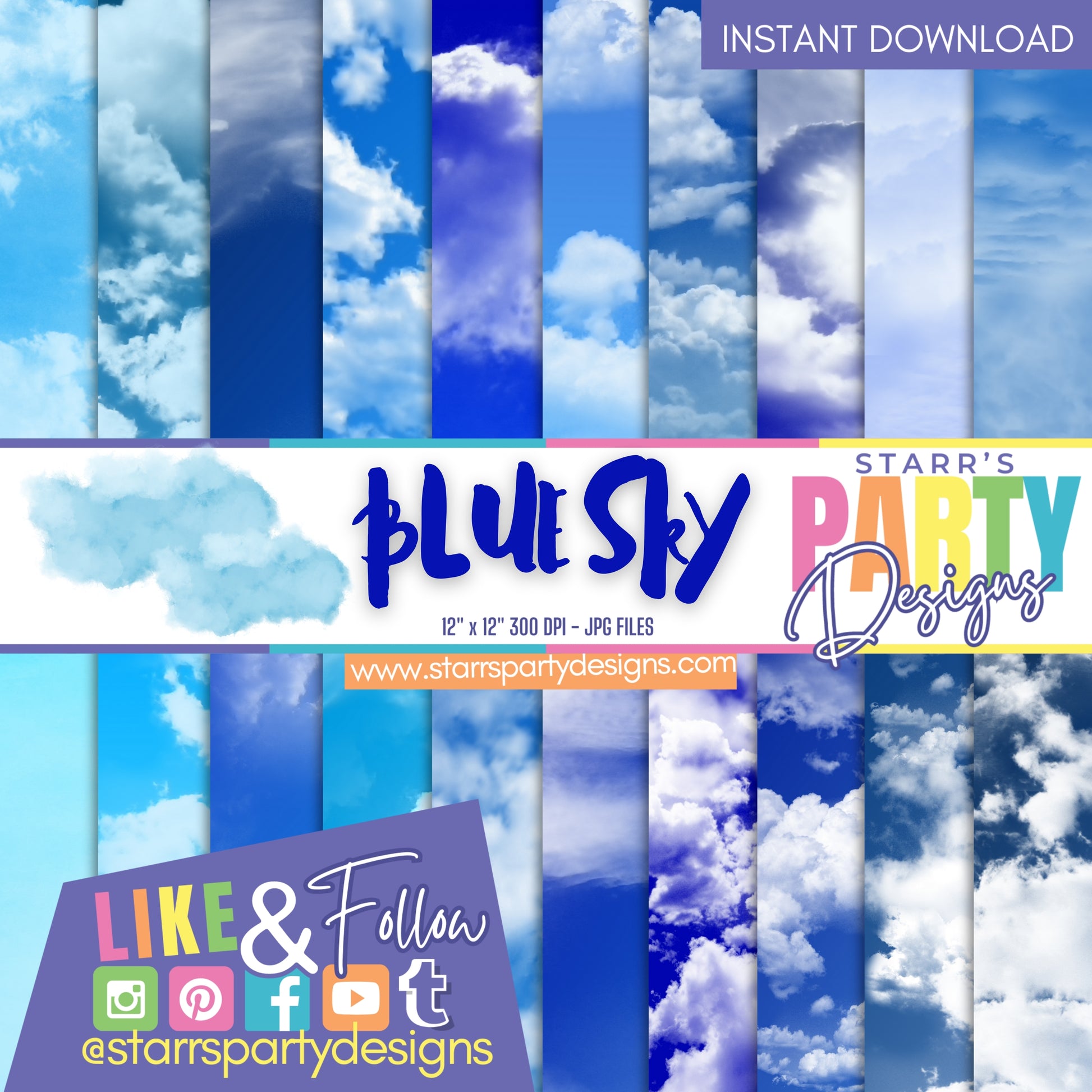 This digital paper pack is inspired by BLUE SKIES.