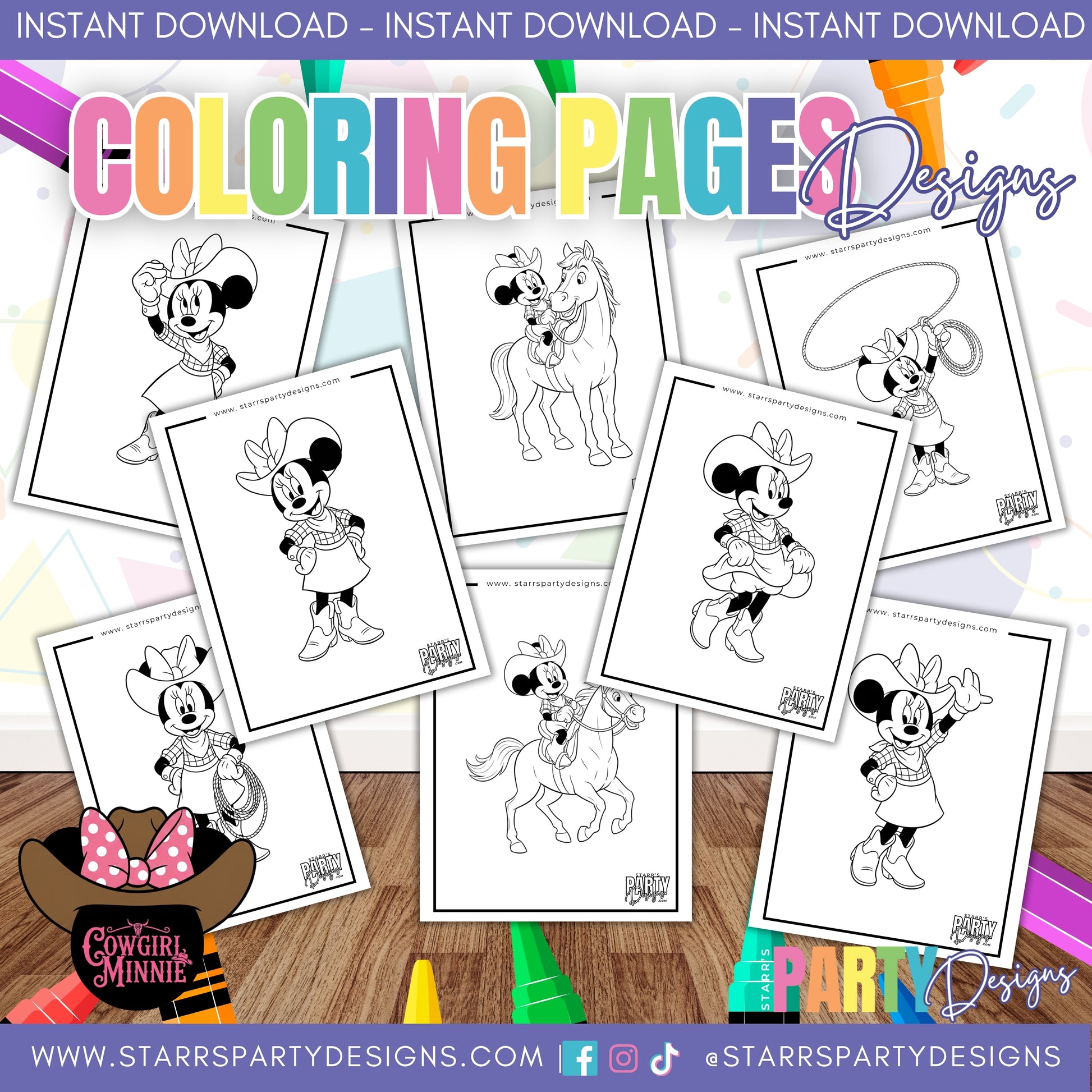 Printable coloring pages inspired by COWGIRL MINNIE MOUSE.