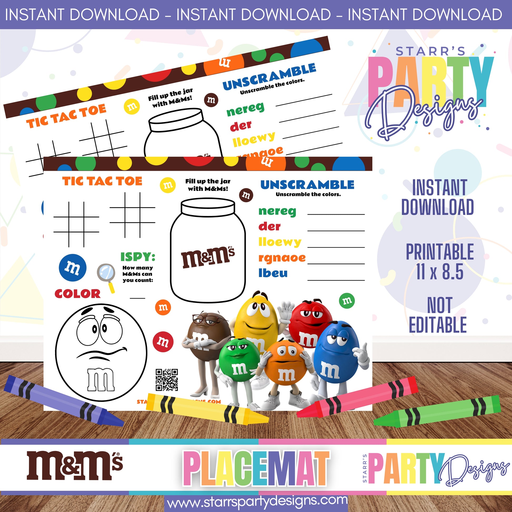 Printable placemat design inspired by M&MS CHOCOLATE.